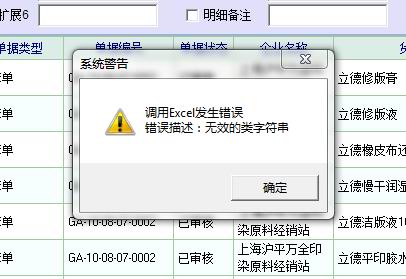 WIN7系统下,出入库单据报表导出保存出错,出现以下字符,无法保存。