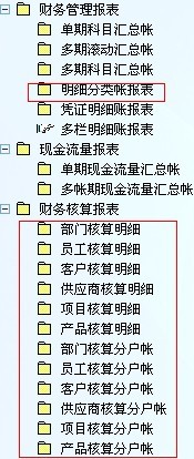 2,财务核算报表里的明细表列,要设置成明细分类帐报表中的一样,有期初数\借方\贷方\期末余额,这样才符合帐册管理与要求...如图二和图三