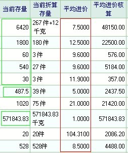 图2:所处位置在库存报表中,特征与图1所述一样。。。。但平均进价核算栏就很规范,即使没有小数点都以“.00”形式显示和的打印(要的就是这种形式,美观、并便于查看),另一个问题是我的所设置的小数点位数都是2位小数的,不知道为什么“平均进价栏”会是四个小数。。。。
