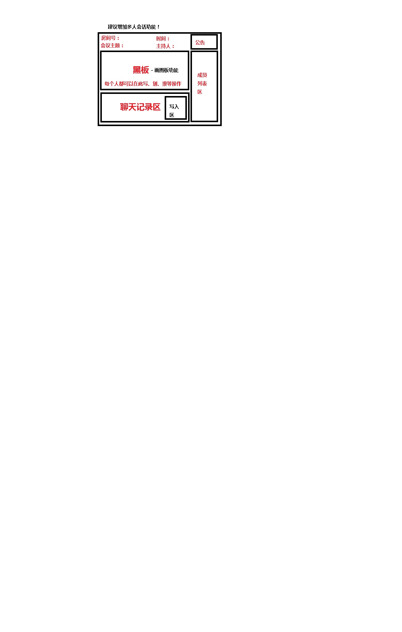 新版的《秘书功能》中《会话讨论》还是不够丰富,建议如下有《会议室》功能:在QQ 讨论组的基础上增加共享画图板功能,使每个会议参与者均可在上面标注、写、划等。