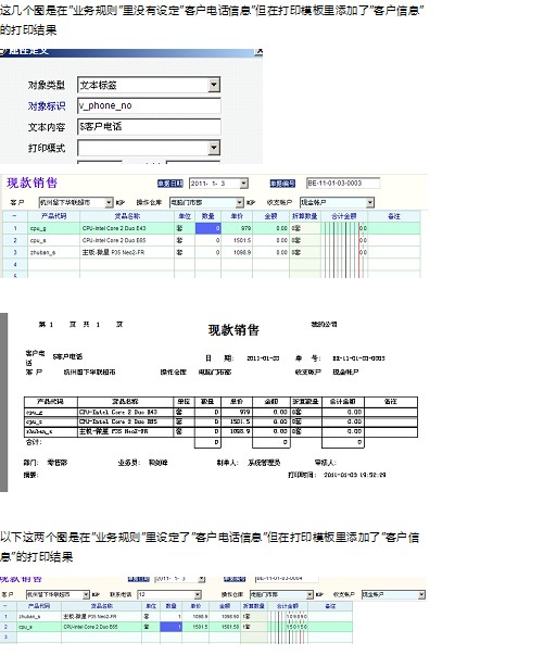 怪我没把问题说清楚。 如果一个公司把送货人员(一般有两个人,一个是搬货一个是开车司机),还有一个业务员,这三个人是一个小组团队,我是想当选择业务部门的A时,与之相配套的搬货A1和司机A2及业务员三人的信息一同带出,而不是要他们三人再手工填写一次。 以上的回答都是要这三人再手工填定一次,工作量很大有时还会忘记。我也知道仅仅添加文本或文本框是可以打印出来而没有任何问题。 想当初我在设计单据时我是弄了很久的:增加客户的电话号码。我在打印模板里怎么设置都不能打印出来,后来还是在QQ群里问了老师才完成--必须要业务规则定义里设置,然后再生成相应的模板。 |