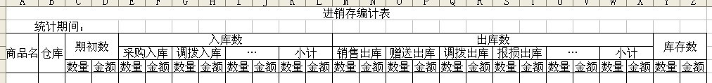 库存报表的进出分类账报表(GX_020)基本就是这个格式的。