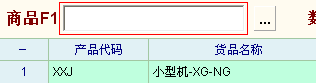 当“商品F1”找到相应商品后,直接在商品输入框中输入数字好了,系统自动判断产品代码或者数字的,省得切换。