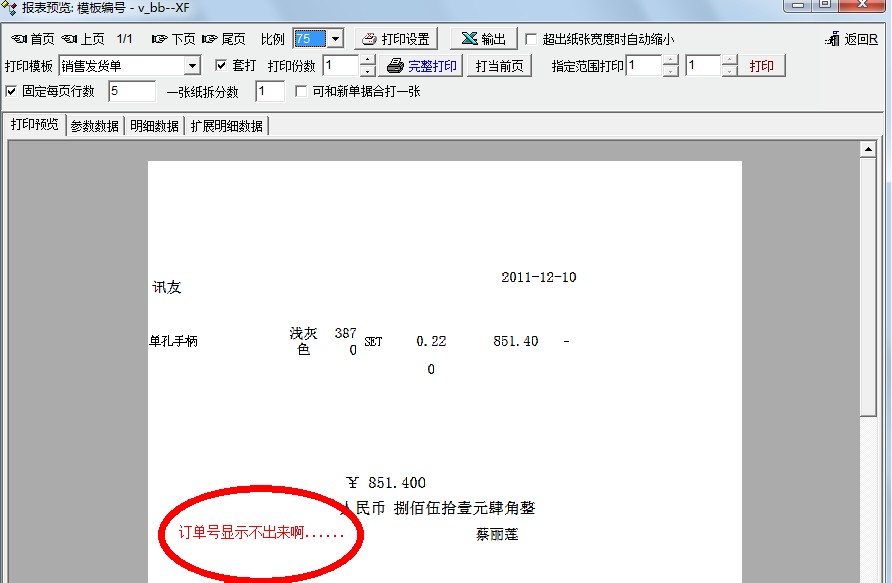 如果我的数据是5行的话, 订单号是可以打印出来的.