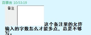这个备注里的允许输入的字数怎么才能多点,总是不够写。