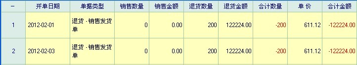 2.在销售流水报表中,为什么“销售业务产品报表”下的报表中出现销售发货单单据类型为”退货-销售发货单“,数量和金额都分别为”退货数量“和”退货金额“,如图02的提示