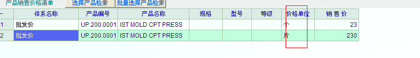 在单位中用最小的单位的时候,可以调出价格体系的价格,在单位中选箱的时候,单价却不能是:单包X折算系数的价格?刚对这个软件在探索中,没找到如何计算整箱的价格方法。特来请教。