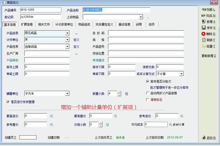 当库存盘点和计件单位或者折算单位不一致的时候设置辅量单位,辅量单位没有单价。辅量单位和计价单位是完全独立的,没有任何关系。针对辅量单位的入库、出库、存量也是独立的。