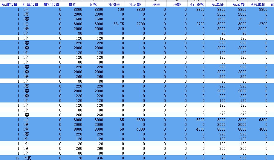 二、针对财务,特别是有些东西涉及到一些函数,比如SUM等函数。如第二张图片显示出来的数据,是不包含函数的,如果对第二张图片里面的模板可以自定义,将一些求值的函数都设置好,然后导出来的数据会自动对应值,最终自动求和
