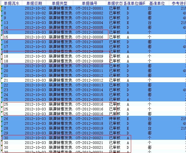 三、对单据编号,目前系统里面所提供的是一张单据上面如果有几个产品信息,那么在显示出来的单据会显示所有产品,但在最终合计的时候还要一个一个的去统计,是否能够改变一下,一张单据上面的所有产品可以进行合计,然后只保留一个单据编号信息,而不是像下面那张图一样(我画框的)