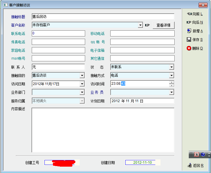 老师,我的客户接触计划是2012-11-11 晚上10点新增的(图1),过了一会通过接触索引打开后就变成了图2的样子了。如果你不是软件的设计者而是一般的使用者看到图2的话,你觉得图2 表达一什么样的信息?如果是我的话,我看到图2我会觉得图2表达的是这样一个意思:我计划在2012年11月11日访问该客户,但实际访问时间是2012年11月17的23点08分43秒。我绝对不会觉得2012年11月17日这个日期是我计划访问的日期的!