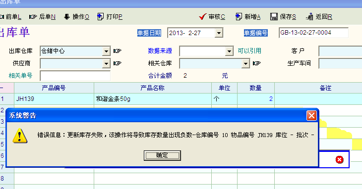 求助_关于出库单的问题,设置不能为负数,在库存充足的情况下不能审核出库单。请教下这是为_产供销