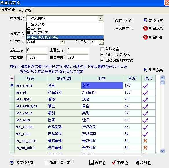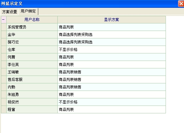 第二图是以用户名进入后,产品资料列表的列定义中的显示方案,与用户绑定不符