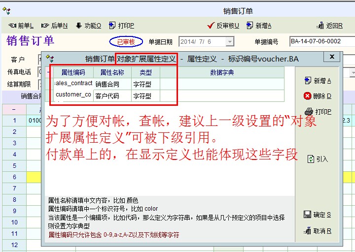 上一级的“单据对象属性扩展”可以被下一级引用,对于查询对帐就很方便了,即在“单据编号”可以显示上一级的 【销售订单】自定义的单据对象属性扩展的内容。其它如