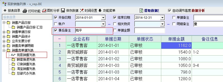 向各位朋友请教一个问题,我在销售列表捡索事后备注时,报表没反应,我出现这个问题很久了,现在的版本是2014-8-28.不知道是不是软件本身的问题,我发图片如下,请朋友们指点。谢谢。