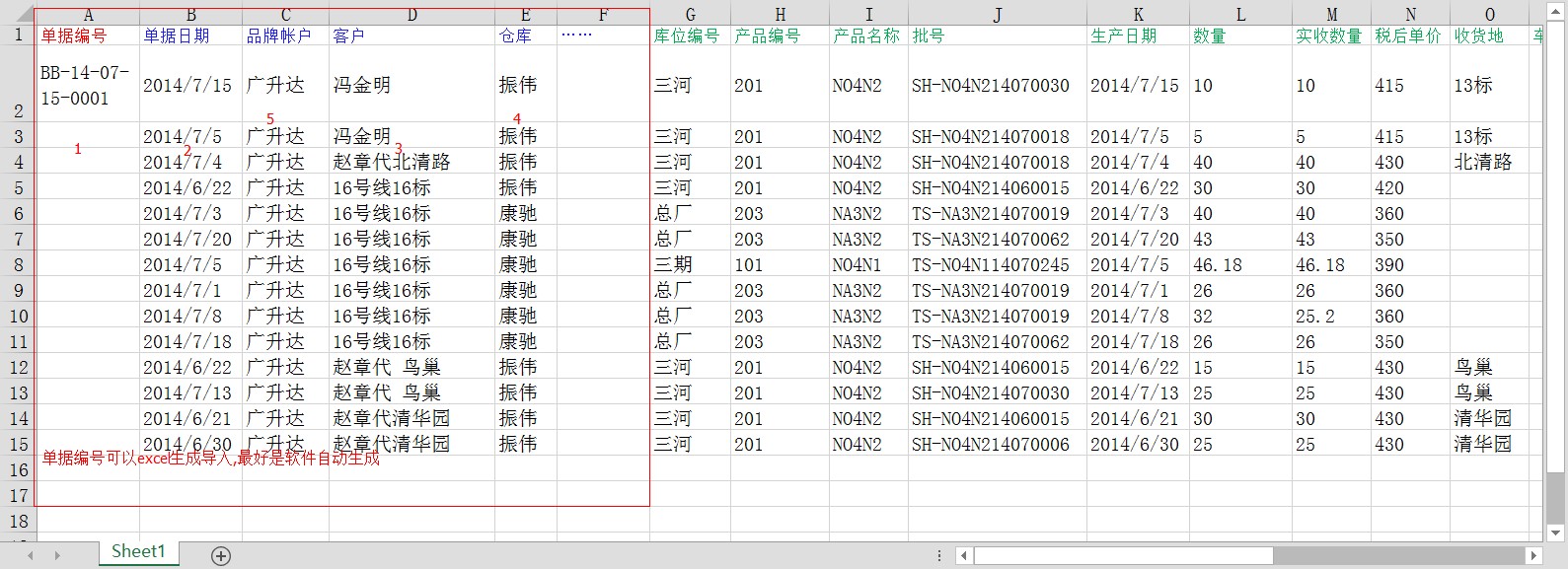 现有excel表格包含单据表头数据,单据明细数据,每行一个单据,导入时每行excel数据自动生成一张单据,数据按标题名称对应。