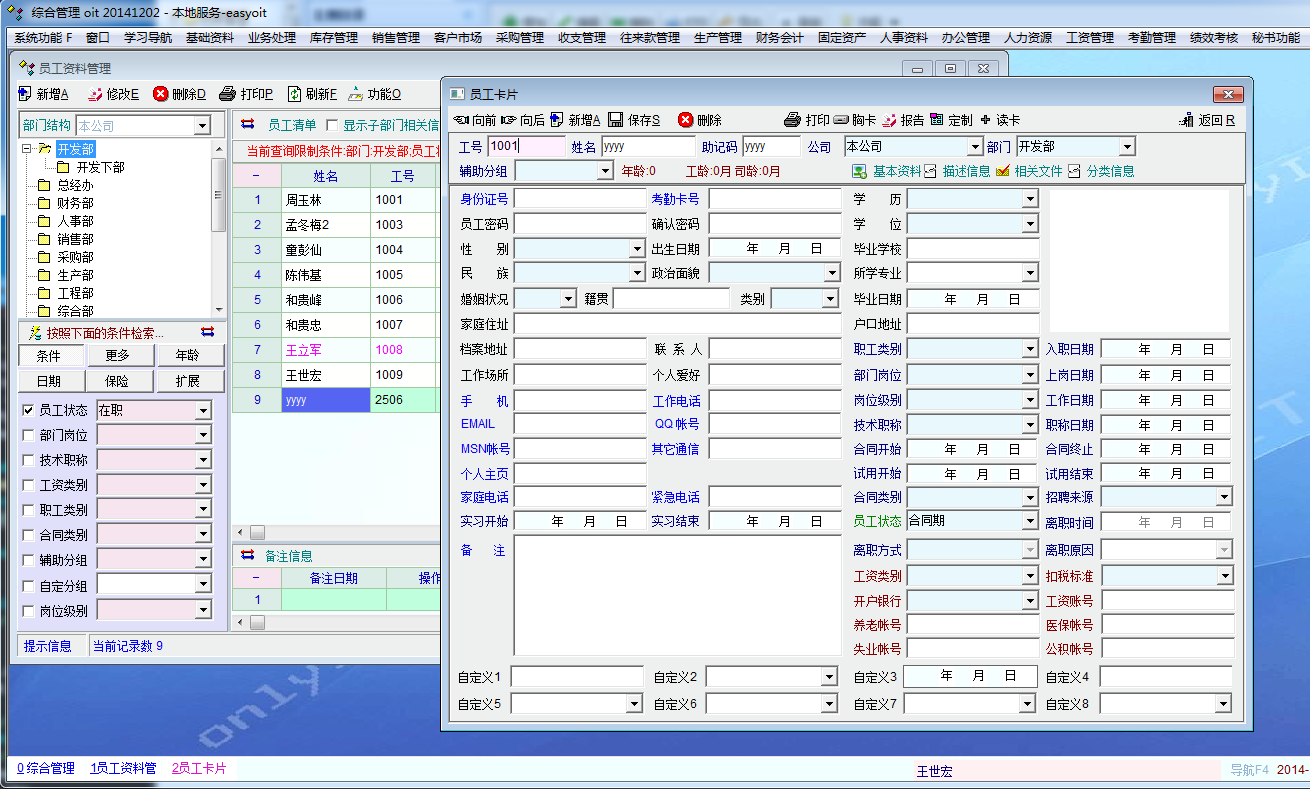 清云 员工工号输入有的工号自动提取原来的资料,不会覆盖。 |