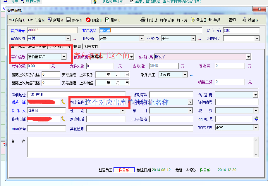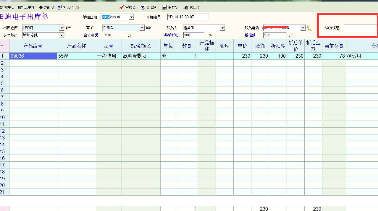 别且在红色位置显示物流信息(自己调客户资料的) 物流名称  并在出库单表头部分显示客户的等级