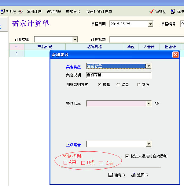 现在大多娄ERP软件都有对物料的ABC分类的功能。对于很多中小企业来说,部分C类低值易耗品是不需要花精力去精细管理的,只需控制某生产周期内的库存总量就行。C类物料在领料时也有最小批量的,不一定要按订单配套领用。C类物料如果做到产品组成里,在做需求计算时要花费大量时间,但实际上一般是库存充足的,无需关注。 建议在产品资料里加入ABC分类信息,然后在需求计算单的集合里可以选择需要计算的物料的类别,这样可以满足企业对不同类别物料的关注,同时又兼顾工作效率。另外,脚本中也可以根据物料不同分类自行设计领料方式与批量。