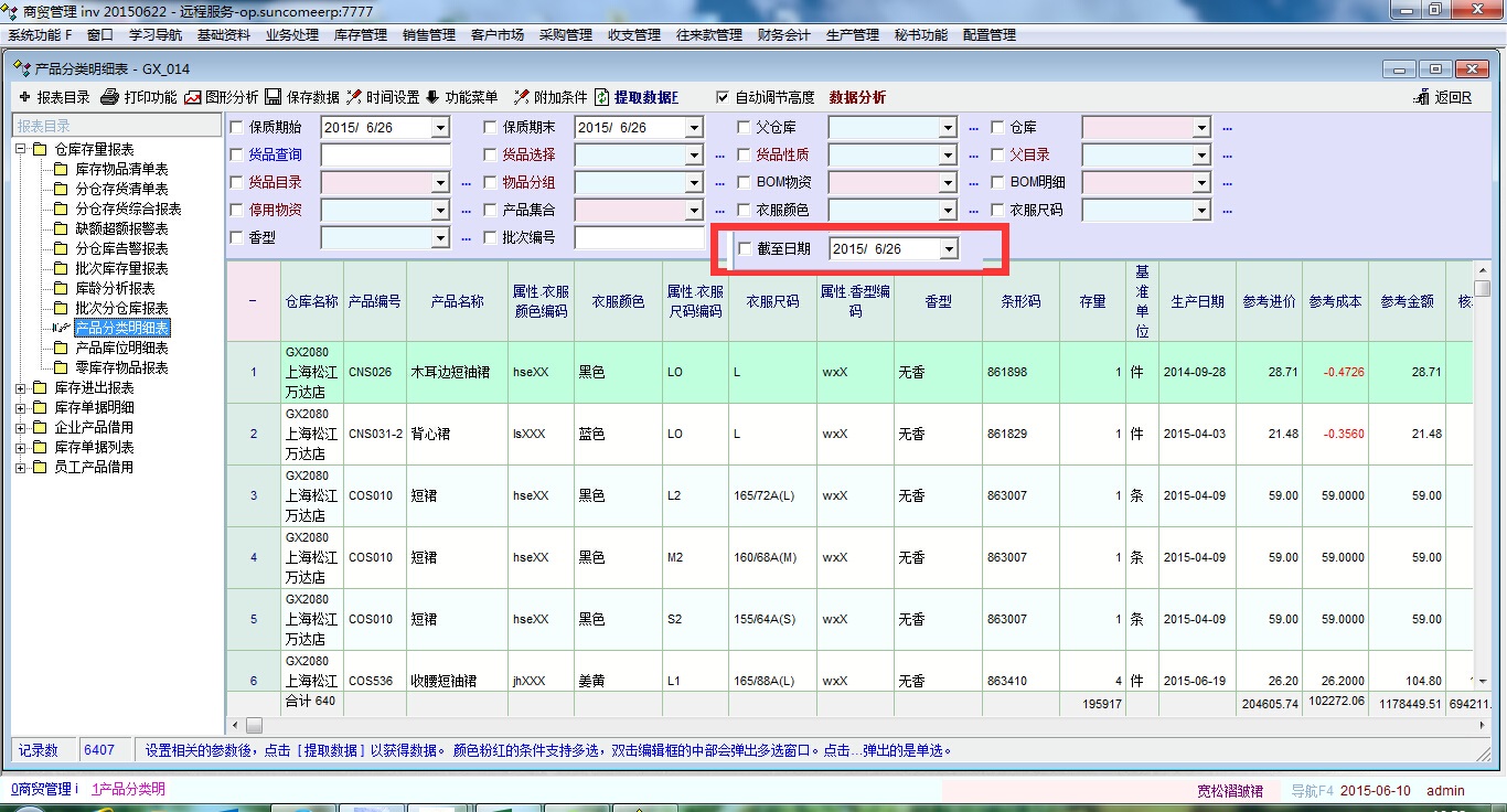 上一版更新时已在库存报表中存量报表(005 006 018)增加截至日期检索条件,能否进一步在“产品分类明细表”、“产品库位明细表”、“零库存物品报表”加入此检索条件。加入后效果如下图: