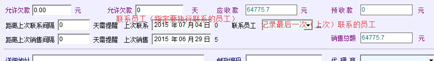 现在的客户管理中的“联系员工”输入框记录的是要执行联系计划(距离上次联系间隔到了时需要主动联系客户)的员工,而且位置放在“上次联系”输入框后面,很容易让人误以为是记录“上次联系”的员工的。 如图,建议“需提醒”后面增加一个“联系员工”,用以指定要执行联系计划(距离上次联系间隔到了时需要主动联系客户)的员工,而现有的“联系员工”输入框则改为文本标签,记录上次联系的员工,与客户接触中的“联系工号”相对应。