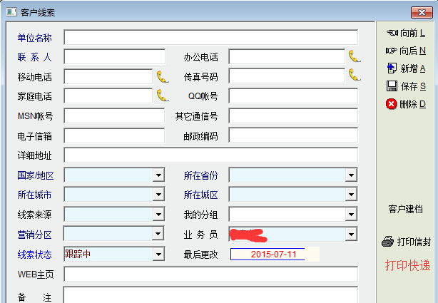 如图,建议在客户线索与商业机会中添加打印快递单的功能。与客户往来,邮寄资料或者样品等行为是少不了的,自然也少不了需要方便、快捷的打印快递单。
