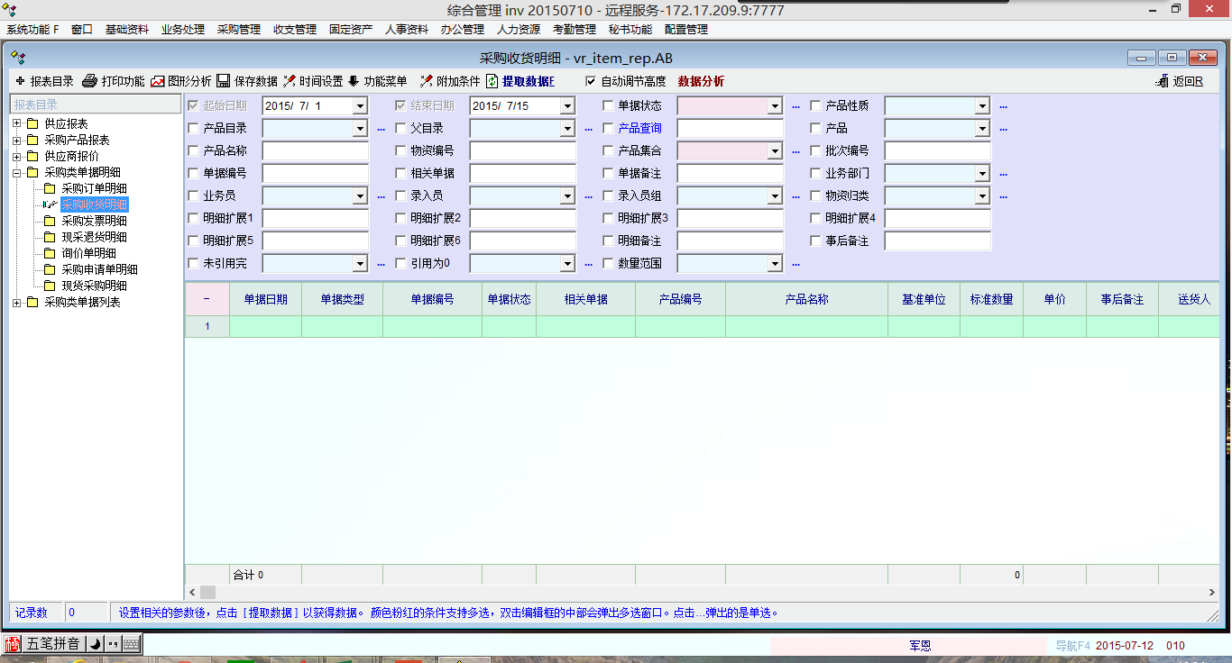 关于采购管理里面报表无数据问题
