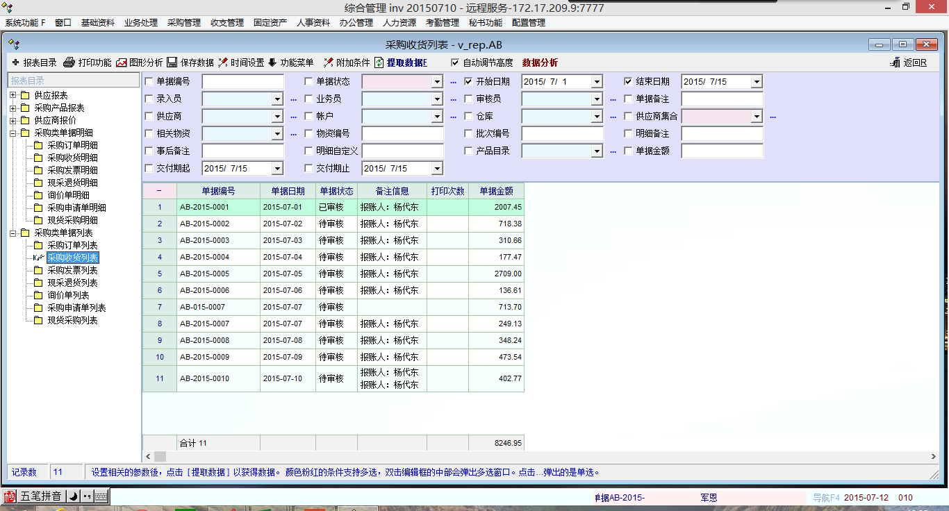 »关于采购管理里面报表无数据问题