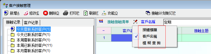从搜索模式菜单来看,问题的根源好像是搜索动作只支持接触记录的搜索而不支持客户记录的搜索。不知是不是这样的呢?