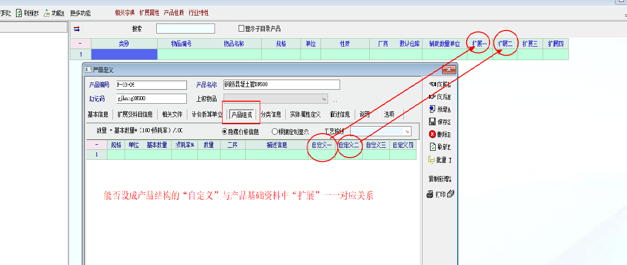 建议产品结构中的辅助单位、扩展项与产品的扩展项等一对一应。