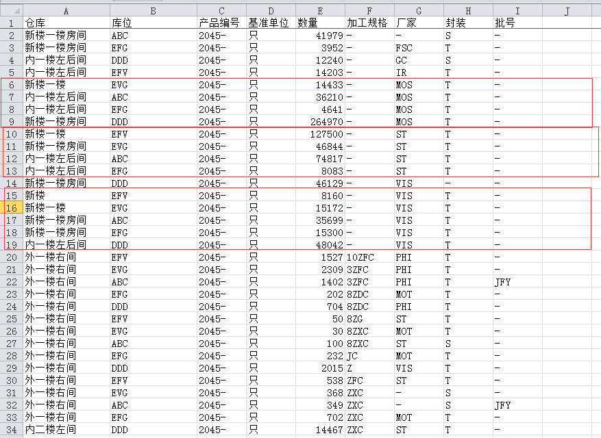 如图,如何在查询产品库存时,将三个红色方框中的多条记录合并成为三条记录(忽略产品所在仓库与库位的不同)呢?建议老师在库存报表中添加忽略产品的仓库与库位,只按照产品的不同行业属性或扩展属性统计库存的库存报表。
