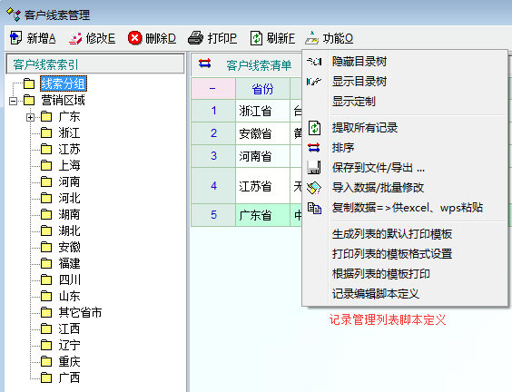 建议为客户线索、商业机会、客户接触添加记录管理列表脚本定义功能,这样可以通过脚本定制一个检索功能及其它一些个性化应用。有脚本,系统更灵活,强大。