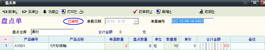 假如我的A1001原始库存量是10,后来我出库2件,那现库存量应该是8件。后来盘点是8件,无误。为什么我填盘点单的时候,账面数量是-2呢?而不是减去出库量的8? 然后我去看物资清单,那显示我当前库存量为18,意味着它是加上了盘点单的盘点数量,为什么会这样?现库存量不应该是自动更新为盘点单那的8吗?这样的话,不就相当如入库单吗?请帮忙解答。谢谢!