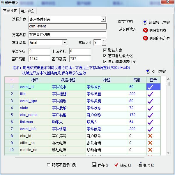 另外,也无法定制显示客户事件的流水。将事件流水打勾后保存。