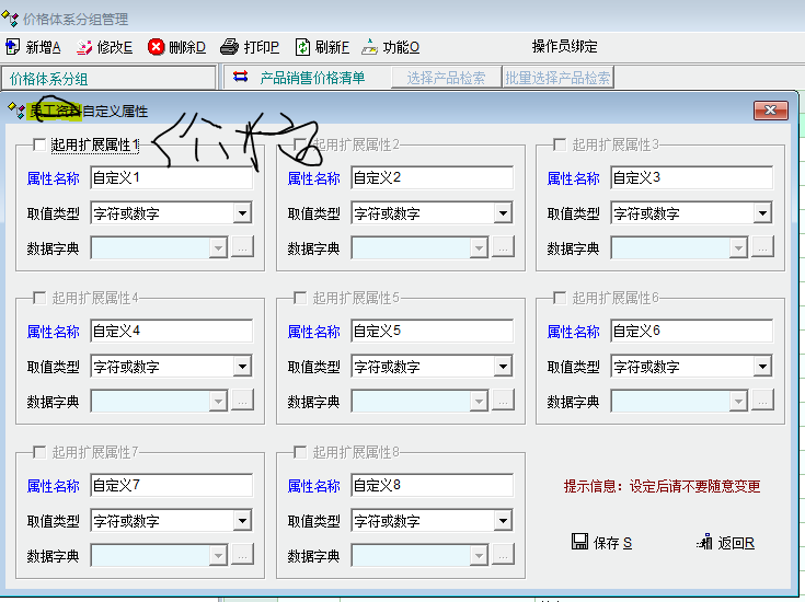 比如用于相同产品,但有所减配的情况下,供应给不同的客户,此价格体系一并用于记录此种特殊要求的相应数值参数 这样,就可以极大的减少 产品资料条目的建立,加快加载速度. 产品资料库只用于标准的条目建立,特殊的客户要求全部在体格体系里建立. 这样不会把产品资料库弄的很乱很乱.