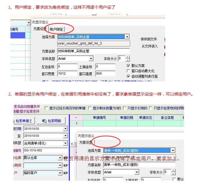 单据引用清单的显示格式请加上绑定用户,绑定用户建议改为或加上绑定角色