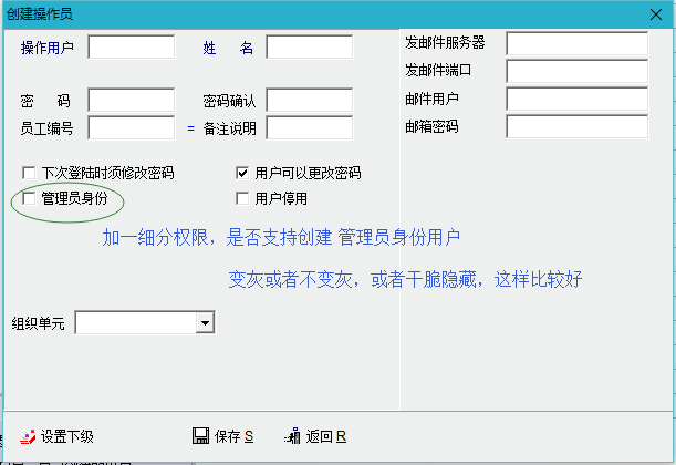 建议再添加一个选项, “列表隐藏”,即不显示在操作员列表里,此选项仅在管理员身份时显示可操作 非管理员身份登陆下,不显示这个选项。