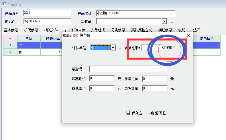 怎么设置你说的 ,这里说标准单位。 而且我需要的重点不是这里可以设置一个一箱等于十盒, 而是这里设置个1箱=100片, 然后在单据里面显示出来,100片的折算单位是1箱,而不是现在的10盒。 有些单据需要10盒,有些单据需要把箱显示出来,就更方便了。