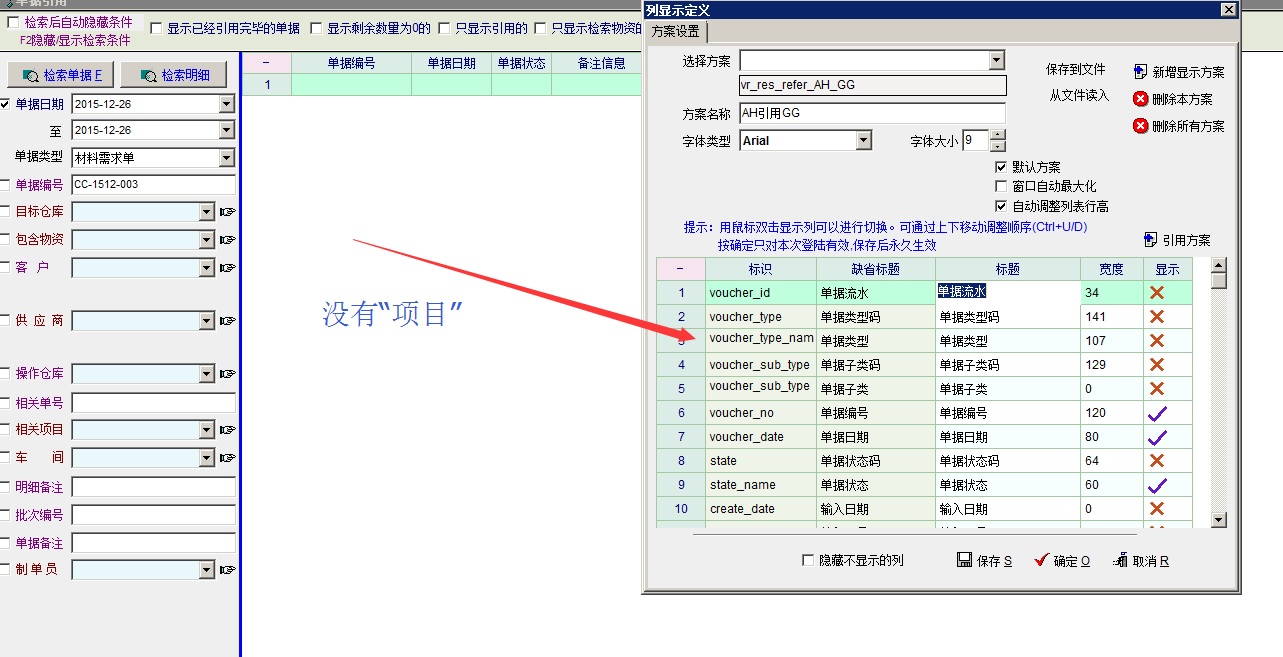 现在引用的单据清单表头没有“项目” ,强列建议添加。