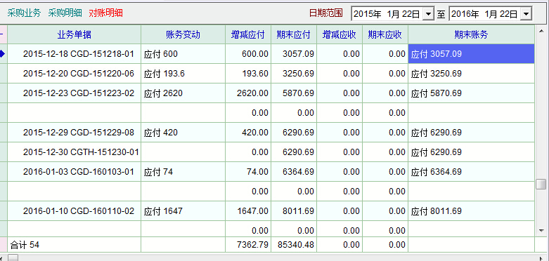 供应商卡片对账单出现许多空白记录,建议消除掉这些多余的空白记录。
