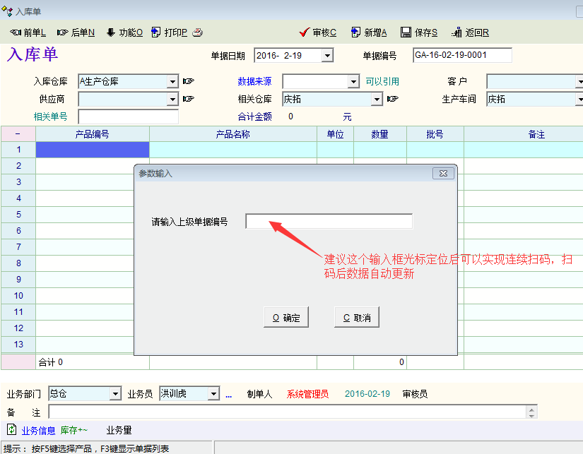 希望在出入库的时候,根据编号引用单一单据,能够实现扫码自动更新数据,录入界面不自动关闭。