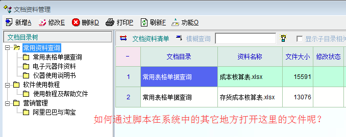 »如何才能通过脚本在系统中的其它地方打开文档资料管理中某一文档呢?