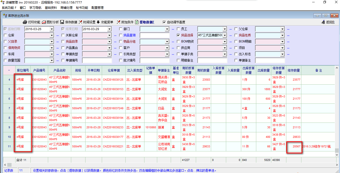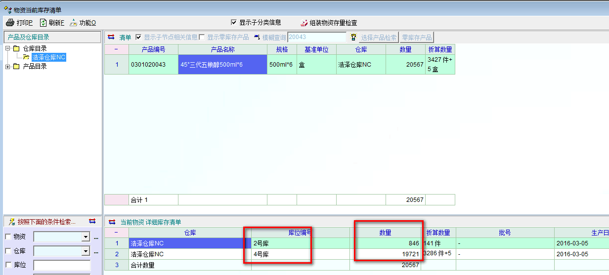简单点的疑问就是: 1一个品种多库位管理时,单独选取其中一个库位的流水明细,结存数时错误的 变成20567了,实际是19721
