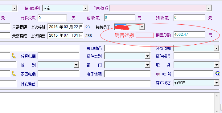 客户分析时,需要用到客户累计销售次数,通过销售次数及销售总额相结合,可以分析客户的采购频率及单次采购金额,从而能更有效的分析、判断客户的价值并预测客户将来的购买行为。建议在客户信息中添加客户累计销售次数的内容。
