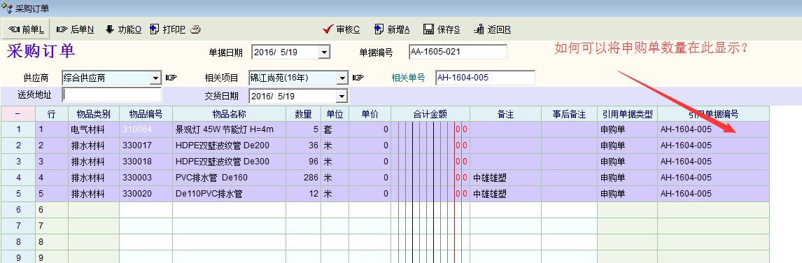 建议物资单据明细表增加引用单的原有数量及已引用数,这样方便审核时做判断.