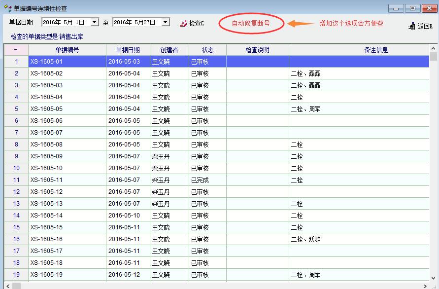 发现物资单据修改时,如果修改了单据日期,单据编号为自动修改,有时候单据的编号规则是以月为单位累加的,这样就会出现断号,需要手工修改。目前物资单据的功能菜单下有“单据编号连续性检查”,可以很方便地看到单据编号是否连续,可惜的是当单据编号不连续时不能自动修复。会计凭证的“断号检查”可以对断号进行自动修复,非常方便,物资单据也可以借鉴一下,这样就会方便很多。
