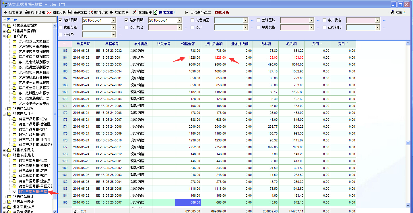 销售报表里的有一些数据个人觉得有点问题。如销售金额列数据和折扣后金额 1、如果有一张销售退货单,销售金额列也应该是负数的,不是只折扣后金额是负数。但目前报表销售金额仍是正数。 2、如果有一张带折扣的销售单,那么销售金额列应该没折扣前的金额。但目前报表折扣后金额与销售金额相等。 如下图