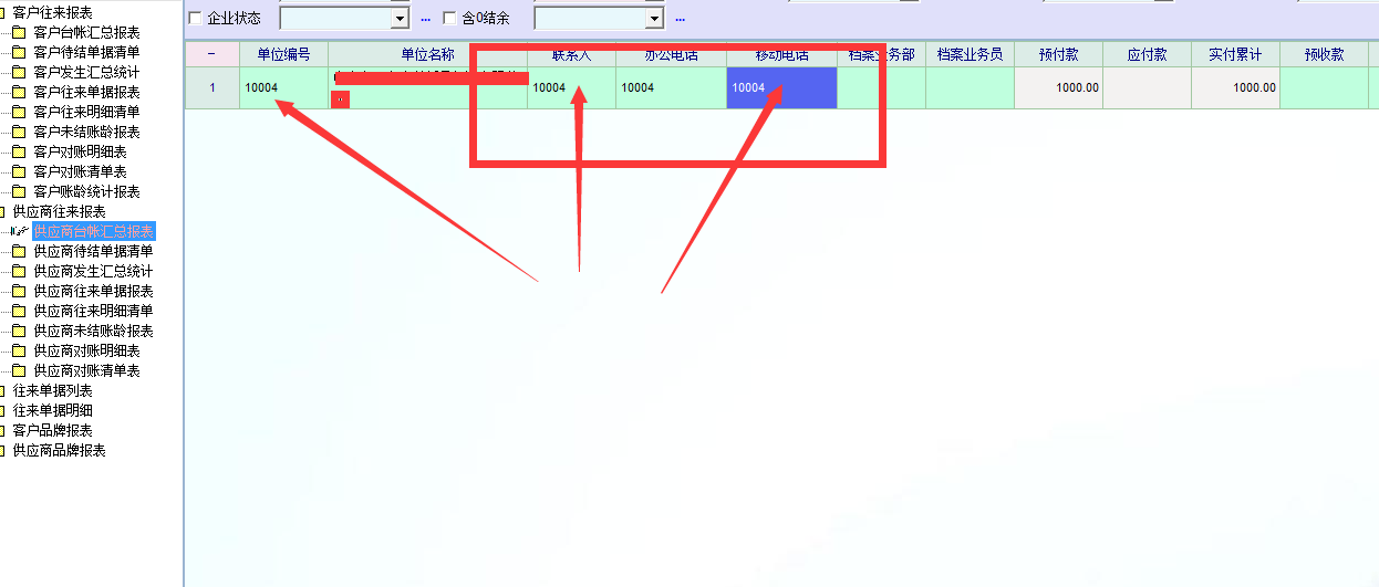 这是BUG吗?报表中自动填写电话联系人为供应商代码。如图