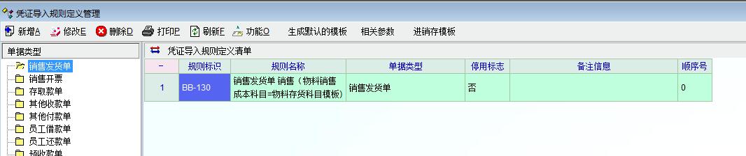 问题: 我们按正常的销售出库一张单。 然后使用BB-130模版生成一张销售发货单凭证。