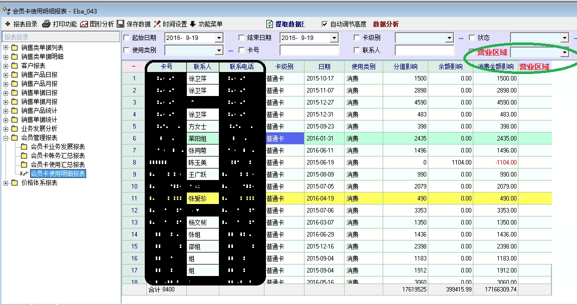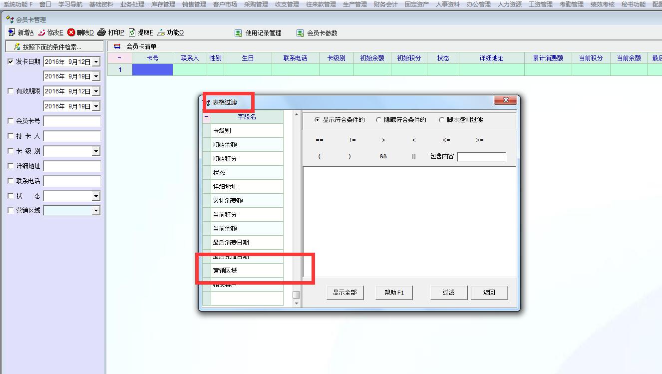 感谢onlyit团队 近日,使用会员管理报表功能发现,系统会将所有会员信息都列出来。没有对所属营业区域加以限制,在有选择性的查看会员的时候,很不方便,恳请团队可以增加在检索条件中和显示定义中可以有营业区域这个条件的功能。